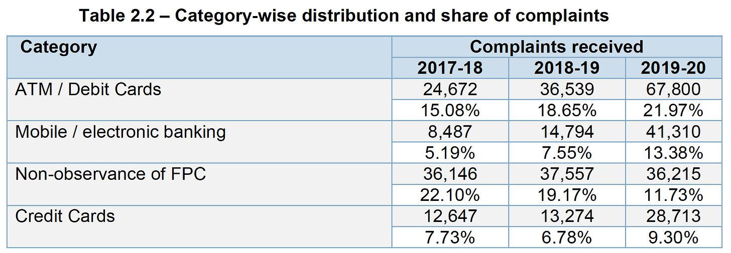 “Non-observance of FPC” or Fair Practices Code are just the guidelines for regular stuff like loan application, processing and disbursement. If you notice the pre-digital boom era (2017-18), you’ll observe that this segment had the highest share of complaints. In fact, for NBFCs, which are generally not known to follow guidelines as much as banks, FPC-related complaints are still the highest (at ~36%).